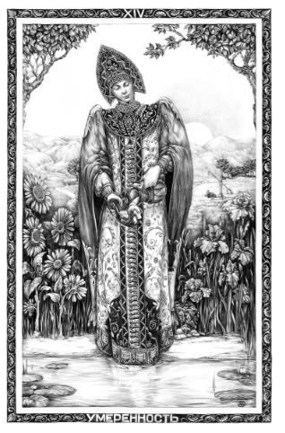 Singing to the hauntingly beautiful aria (“Song to the Moon”) in Act I of Czech composer Antonin Dvorák’s 1900 opera that bears her name, the rusalka captivates us as she carefully balances the waters of life and waters of death within her. In this regard, I think of her as a wholly Slavic version of the female divine being often depicted in the Tarot’s Major Arcana card of Temperance.